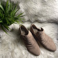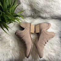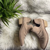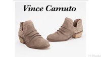 Complete a bohemian look with these Western-inspired booties. Perforated suede and a stacked heel complement a wide range of styles through various seasons. From Vince Camuto.