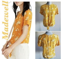 Silk Button-Back Tie Tee in Butterfly Garden size M.