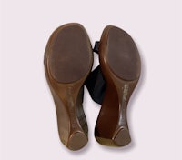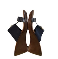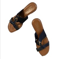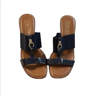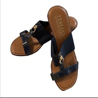 Italian Shoemakers Navy Wedge Size 8.5. Super comfortable, cute & in great condition!! Straps are elastic webbing and patent leather and gold hardware accent and wedge heel Heel height 3 inches Looks great with any outfit.