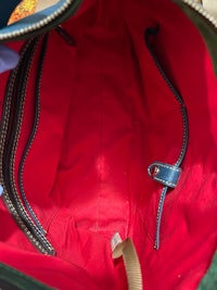 Kingston Hobo Florentine Leather in Denim Blue is STUNNING! Lined with pockets and key clip, Zip Top Closure with Double Leather Tassels, Front Side Slip Pockets and Front Magnetic Snap Pockets, Slightly Adj Strap, Gold Tone Hardware and Protective Feet. Florentine Leather is a Soft Leather and May Show Grain Lines. May show rub marks of which most can be buffed out. This is the nature of the leather and not a defect. This beautiful bag has only been used 2x!! Dust Bag included! SIMPLY STUNNING!